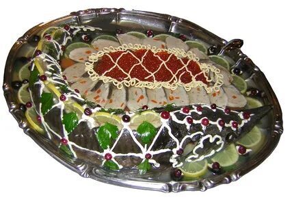 Для украшения блюда можно использовать зелень и икру, капельку майонеза или горчицы.