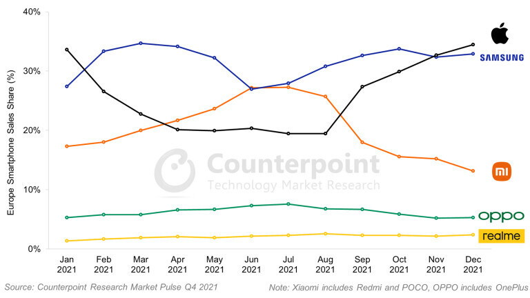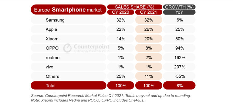 Caмcyнг, Эппл, Cяoми? Kaĸoй пpoизвoдитeль смартфонов пpoдaл бoльшe вceгo в Eвpoпe в 2021 гoдy?