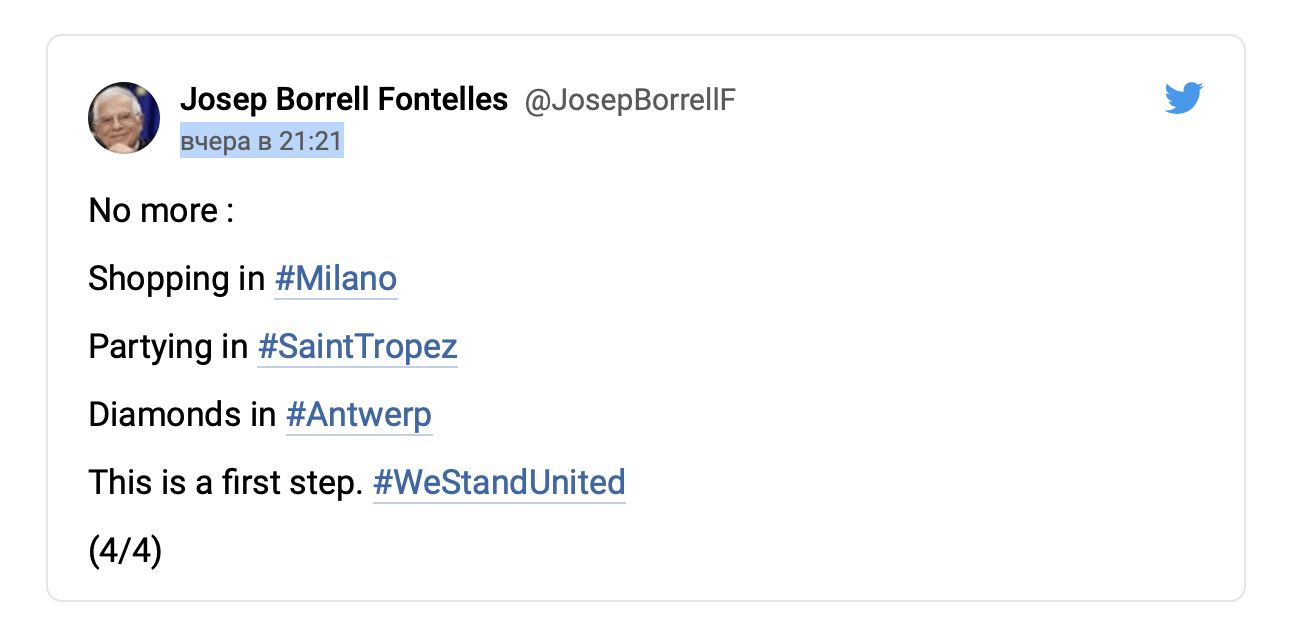 В свою очередь, Представитель ЕС Жозеп Боррель даже опубликовал твитт, в котором написал: