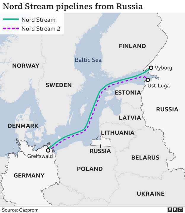 Северный поток-2 - это трубопровод протяженностью 1200 км по дну Балтийского моря, который будет доставлять газ с российского побережья близ Санкт-Петербурга в Любмин в Германии.