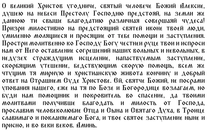 В этот день святому Алексию верующие молятся об излечении болезней глаз, о хорошем путешествии, о мире с врагами и недоброжелателями, о здоровье и крепости семьи, о благополучии в завершении любых дел, судебных процессов. Также некоторые верующие просят святого помочь им встать на праведный путь, очистить душу от скверны и греха.