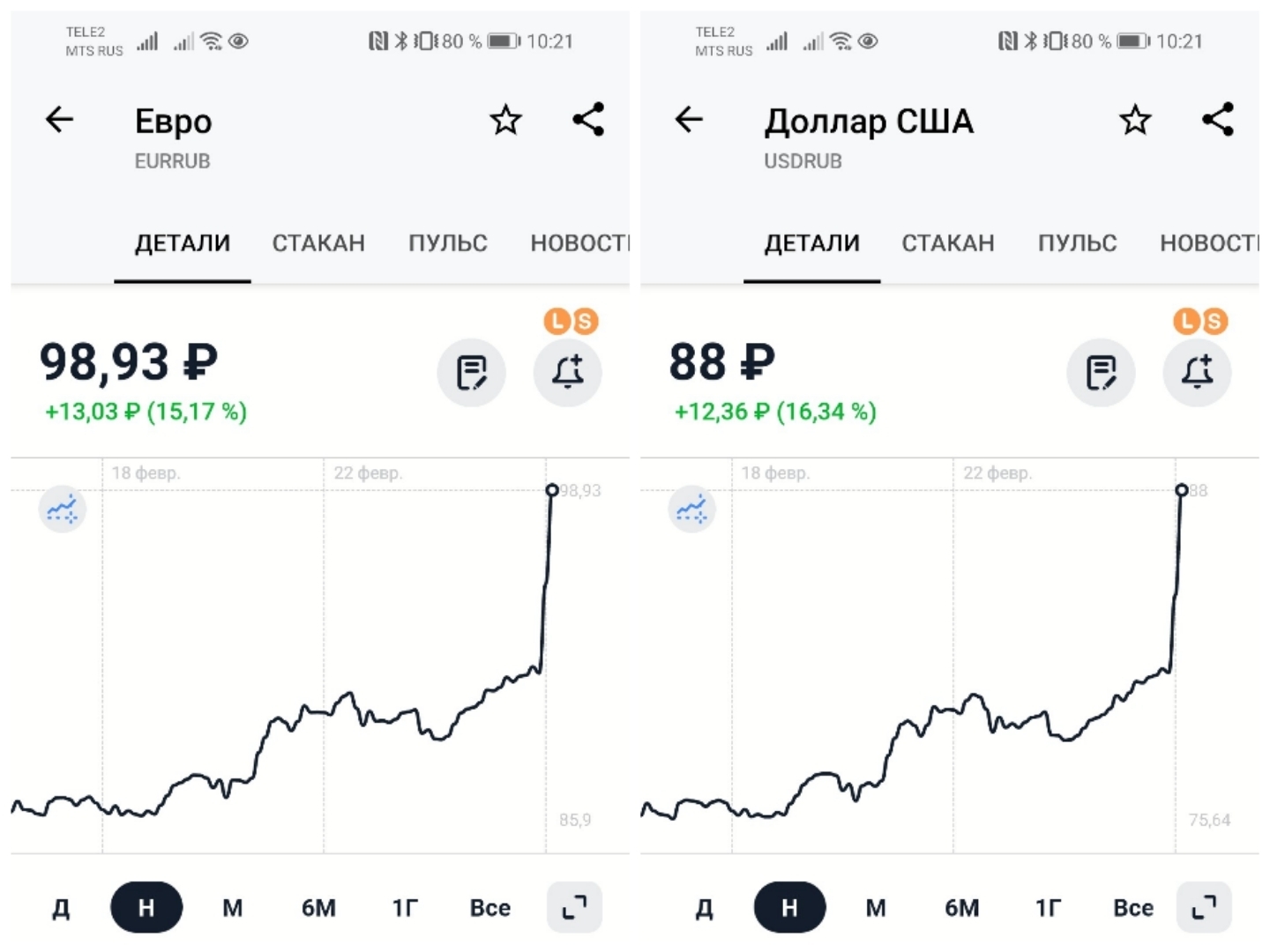 Сегодня утром Владимир Путин объявил о начале военной операции в Донбассе. На старте торгов курс рубля и котировки акций довольно быстро достигли ограничений, установленных биржей 🥊 Российские площадки были вынуждены взять техническую паузу. С 10:00 мск возобновлены торги на Мосбирже. СПБ Биржа планирует возобновить работу в 17:30 мск вместе с открытием рынка США. Банк России объявил о мерах, которые позволят стабилизировать ситуацию на финансовом рынке.