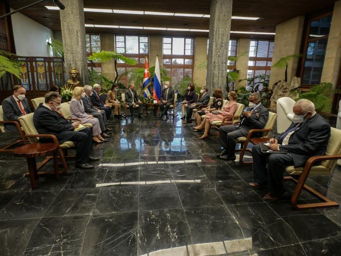 В ходе встречи президент Кубы подчеркнул прекрасное состояние отношений между двумя странами, подтвердив при этом готовность укреплять высокий уровень политического диалога и обменов в сферах, представляющих общий интерес, в том числе в парламентской сфере. Он поблагодарил резолюцию против блокады острова Соединенными Штатами, ежегодно издаваемую Государственной Думой, а также гуманитарную помощь, полученную от Федерации для смягчения последствий пандемии.