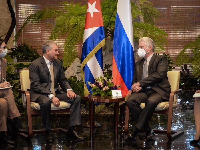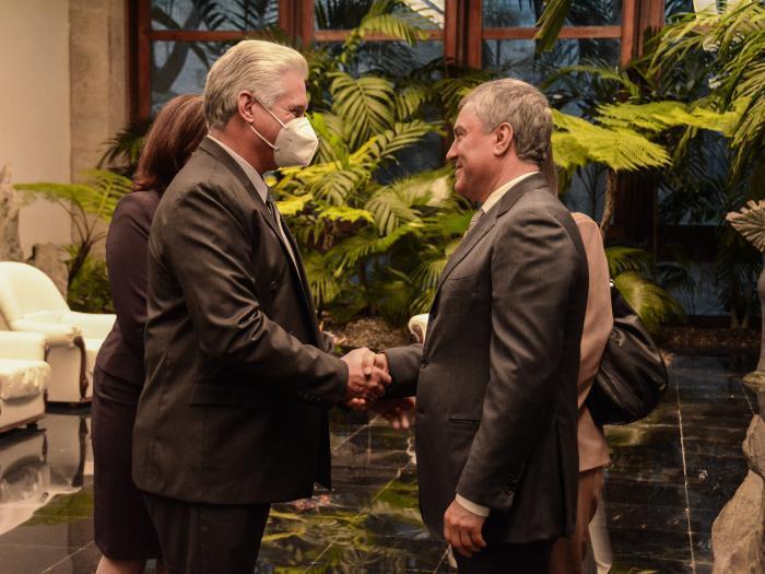 Первый секретарь ЦК партии, Президент Республики Мигель Диас-Канель Бермудес провел встречу с Его Превосходительством г-ном Вячеславом Володиным, Председателем Государственной Думы Федерального Собрания Российской Федерации, который находится с визитом Куба.
