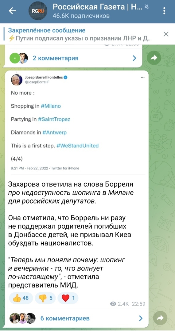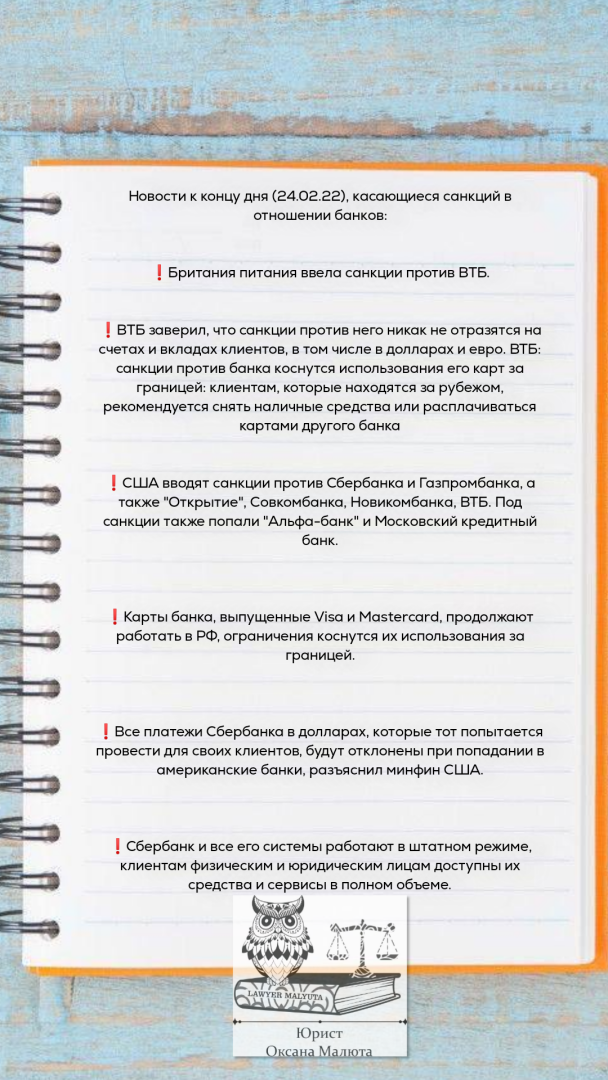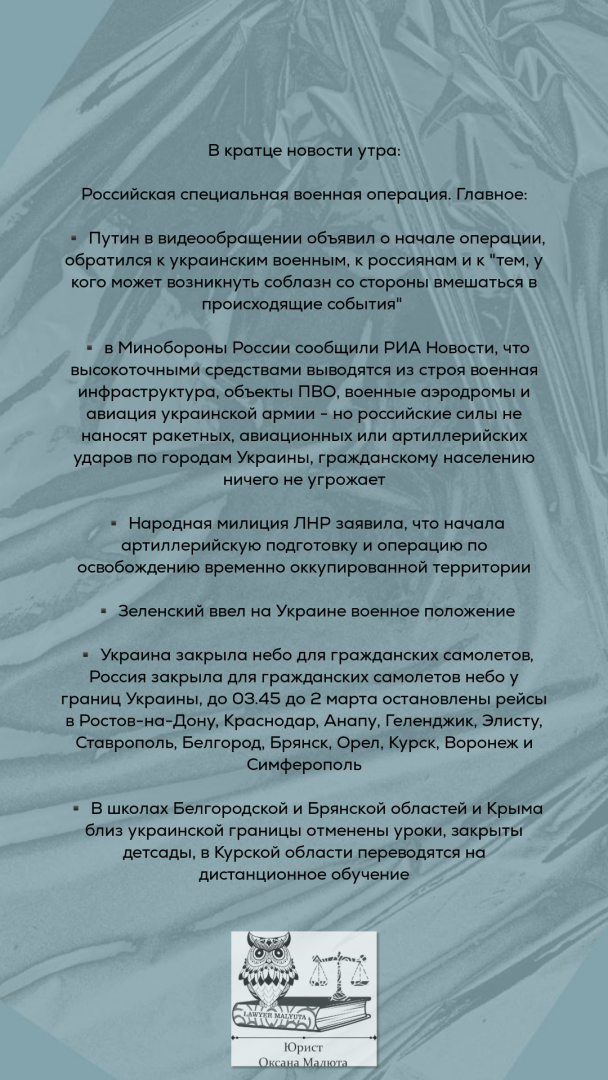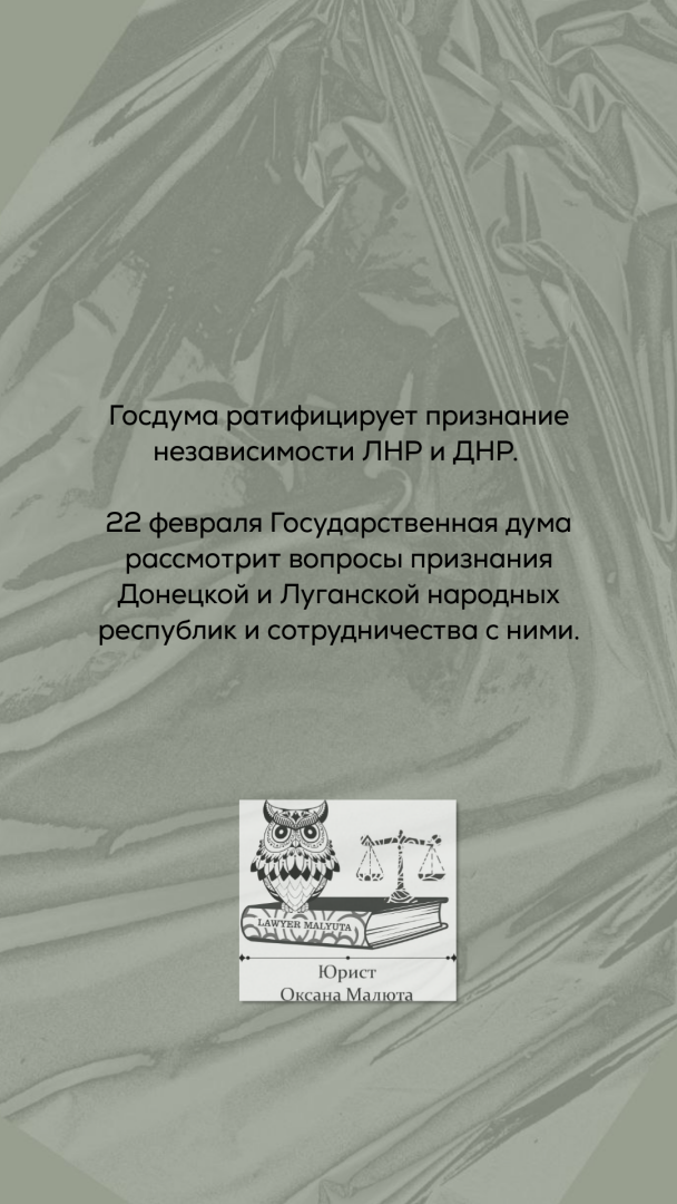 Здесь продолжаю свою рубрику про краткие правовые события в свете последних реалий, происходящих в связи с признанием (https://www.9111.ru/questions/7777777771742044/) Россией ДНР и ЛНР. Все новости не пишу, их хорошо освещает СМИ.
