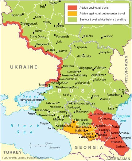 Министерство иностранных дел, по делам Содружества и развитию (FCDO) также рекомендует воздерживаться от любых поездок, кроме необходимых:
