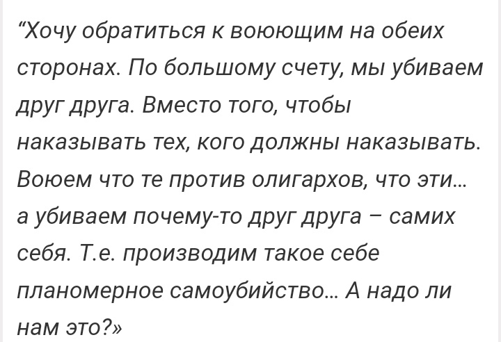 Правильно говорить, на войне страдают невинные и незаинтересованные стороны. А те кто смакует с военных действий они всегда в стороне. Кому война,а кому мать родная не зря в народе говорять.