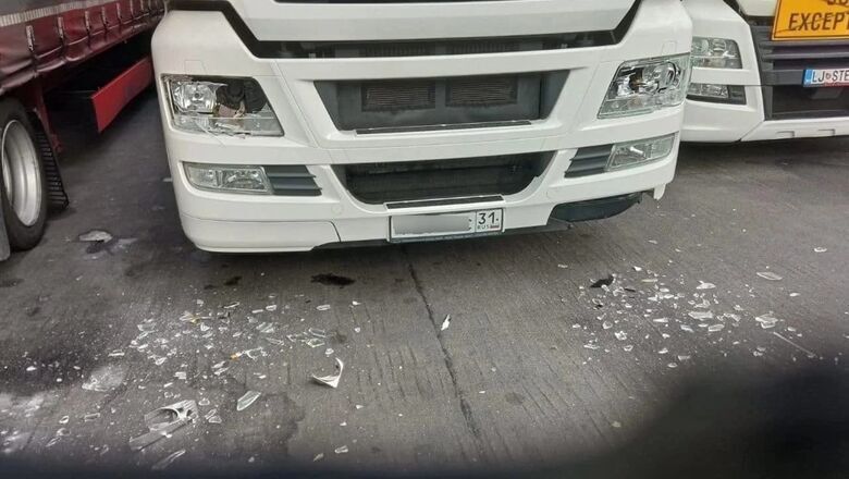 Водитель-украинец разбил фонари на грузовике с российскими номерными знаками