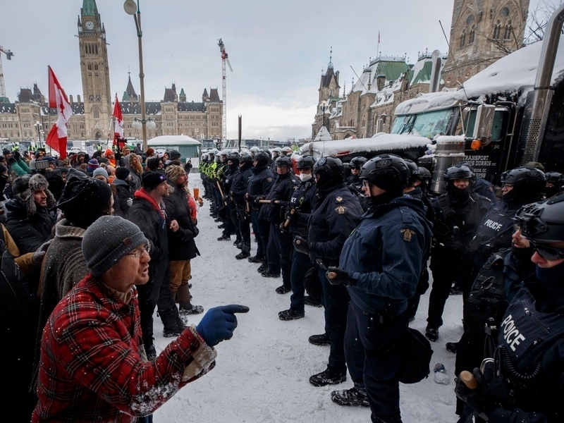 В течение 10 дней в рамках объявленного премьер-министром Канады чрезвычайной ситуации была проведена "зачистка", по официальной терминологии, столицы страны Оттавы от протестующих дальнобойщиков и примкнувших к ним жителей. (Закон о ЧС, после 1988 года эквивалентный Закону о военном положении и заменивший его, применен впервые).