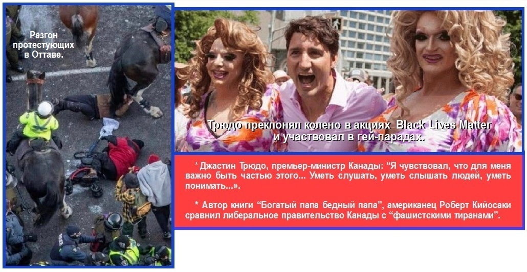 Как пишет американский журналист Андреа Видбург,"К удивлению дальнобойщиков канадский премьер, который в 2020 году хвалил дальнобойщиков до небес и демонстративно вставал на колени, чтобы почтить насильственную, разрушительную, преступную Черную жизнь (Black Live matters), вдруг отказался разговаривать с ними. Вместо этого опорочил их как злых людей, в том числе назвав их нацистами. За удивительно короткое время Трюдо превратился из смешной фигуры в злобного тирана, совершенно не осознающего этого.