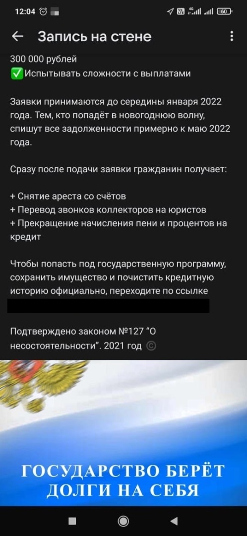 «Хотите попасть под государственную программу, сохранить имущество и почистить кредитную историю, тогда переходите по ссылке…» - звучит заманчиво, не правда ли?