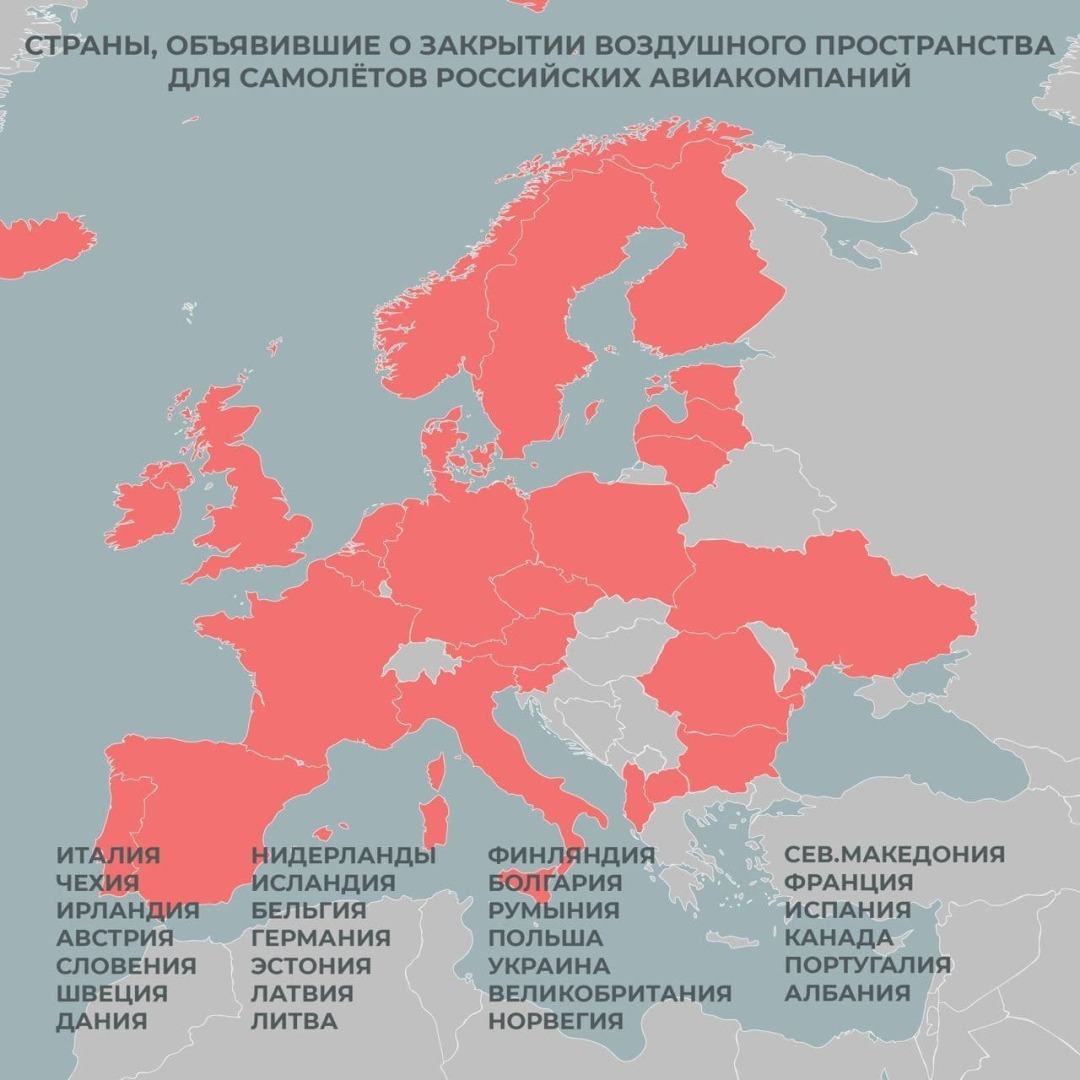 Обновленный список стран, закрывших небо от российских самолетов