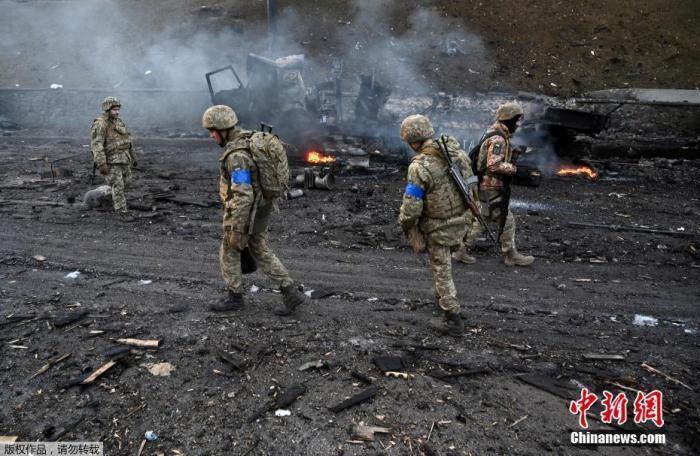 26 февраля по местному времени украинская армия заявила, что сражалась с российской рейдовой группой в Киеве. На снимке украинские военные собирают неразорвавшиеся снаряды после перестрелки.