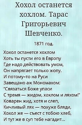 Фейк о фальшивом стихотворении Шевченко, его автор, и его роль в пропаганде ненависти.