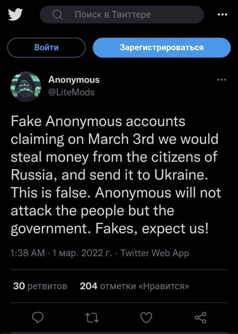 тоесть эти ананимусы за убийство людей в донбасе и луганске .а киев им видители важней всего так получается.тоесть они за нациалистов фашистов .каждые сто лет все страны обьеденяются чтоб отхватить пиздюлей от россии и успокоится еше на сто лет.американци в пропаганде профи.а хакеры эти куплены амирикой за американские бабки.мне интересно просто привидите примеры когда россия хоть один раз сама первой на когото напала.всегда в обороне .еше с печенегов .кто к нам с мечем придет тот меча и выхватит.