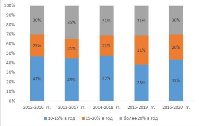 Структура распределения компаний по группам роста оставалась сравнительно размеренной. Меж что отмечалось понижение толики фирм с темпами прироста спасения больше 15% в год (до 56% от совместного количества по сопоставлению с 62% в минувшем списке). При данном удельный авторитет фирм третьей группы (10-15% в год) возрос до 43%, собственно что ещё больше укрепило их основные позиции.