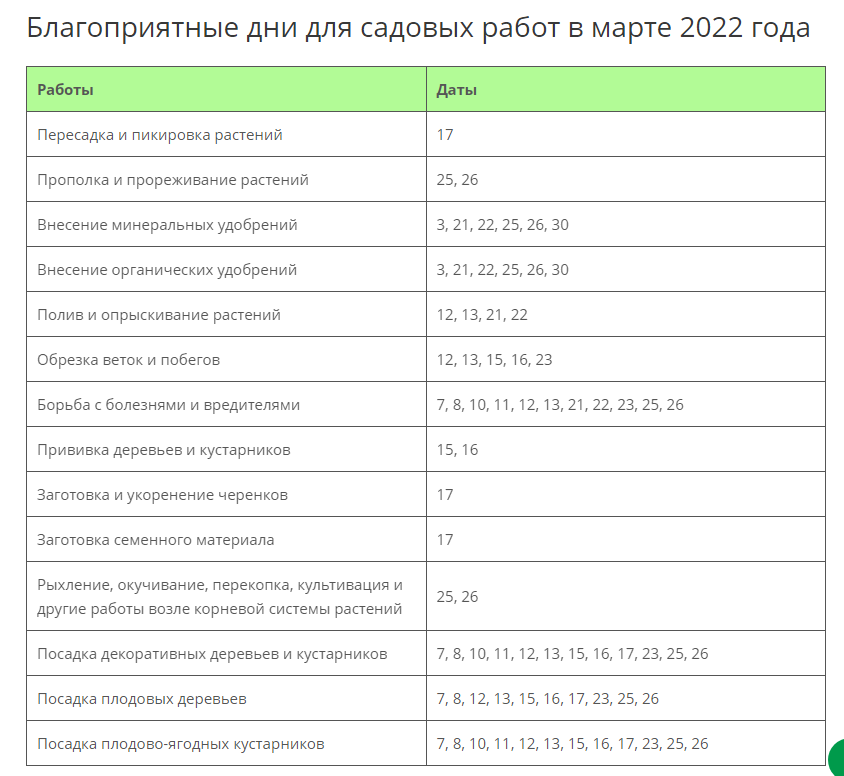 Благоприятные дни для проведения садовых работ в марте 2022 года