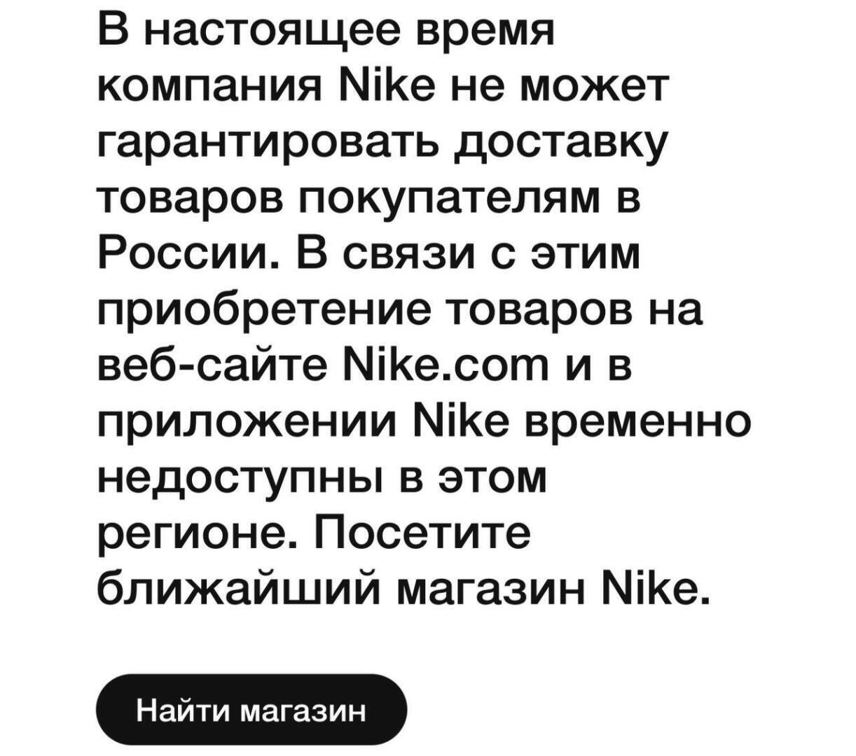 Яблочная компания полностью прекратила продажи всей техники в официальном онлайн-магазине в России, а сайт Nike просто недоступен.