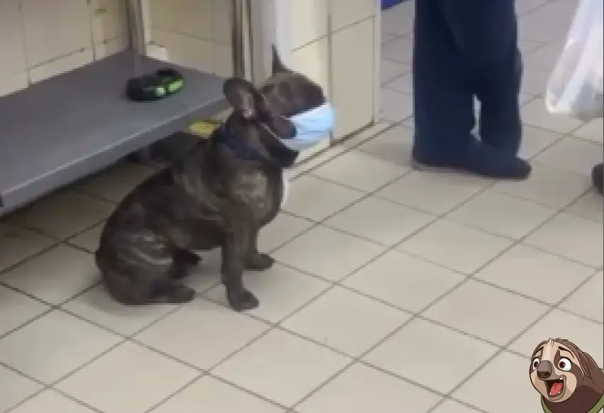 Охране пришлось натянуть маску на агрессивного бульдога, который кусал покупателей.