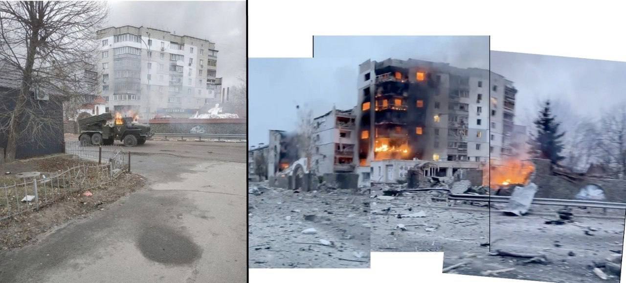 Пример раздачи коктейлей Молотова территориальной обороне: бойцы решили забросать бутылками с зажигательной смесью установку БМ-21 «Град» ВС РФ, результат привёл к очевидным последствиям – боекомплект сдетонировал.