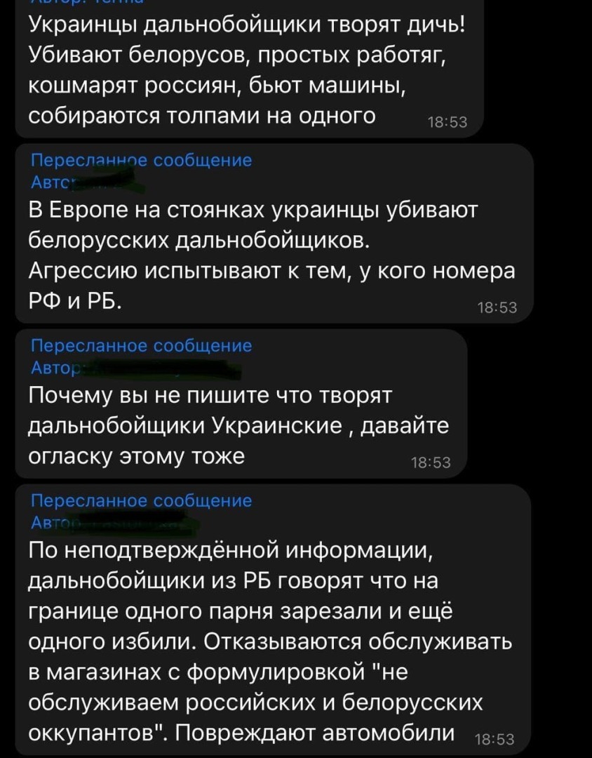 Адекватным украинцам-дальнобойщикам пришлось даже записывать обращение, чтобы остановить вспыльчивых соотечественников.