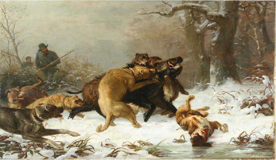 Несколько иное направление по культивации гончих сложилось в Германии, где для травли кабана или медведя привлекались собаки разного типа: мастифообразные (буллен-бейцеры и доги), а для нахождения зверя – чутьистые баварские и ганноверские гончие, бракки и крупные таксы.