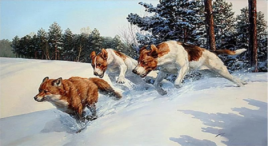 Окончательно определилось и назначение гончих собак – найти след и по нему преследовать зверя до подхода охотника, сообщая ему о своём преследовании особым трубным лаем – гоном.