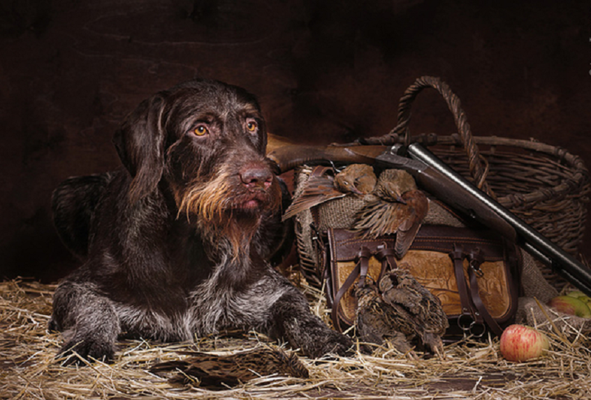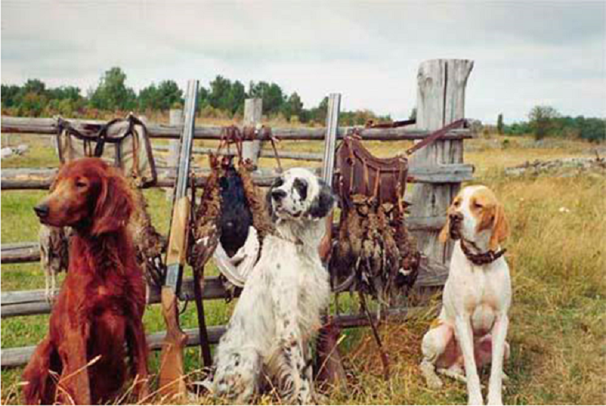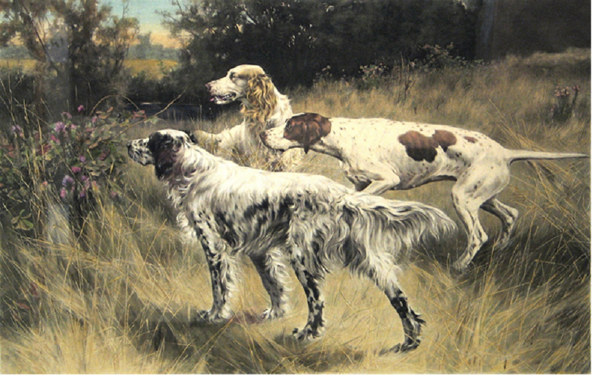 С гордостью сообщалось, что замирающая стойка Тираской легавой – результат кропотливых дрессировок по натаскиванию.