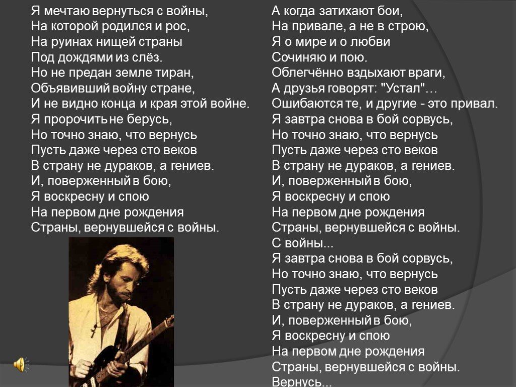 Вообще то я не поклонник его, но слова песни меня поразили.