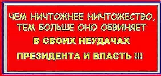 Заметьте, из телеящика нет ни одной новости о взлете цен в 2 раза, пустых полках, закрытиях предприятий, увольнениях. Где высказывания "военных экспертов" (бывших экспертов-вирусологов) о ближайшей перспективе этой ситуации? Где экономические планы и программы по выходу из ямы, в которую стремительно провалилась страна? Честно, меня это волнует куда больше, чем взятие очередного украинского населенного пункта...