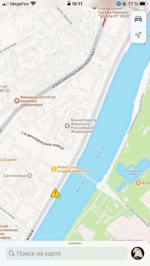 Министерство обороны России переименовали на картах Apple в «Министерство Фашизма Российской Федерации.