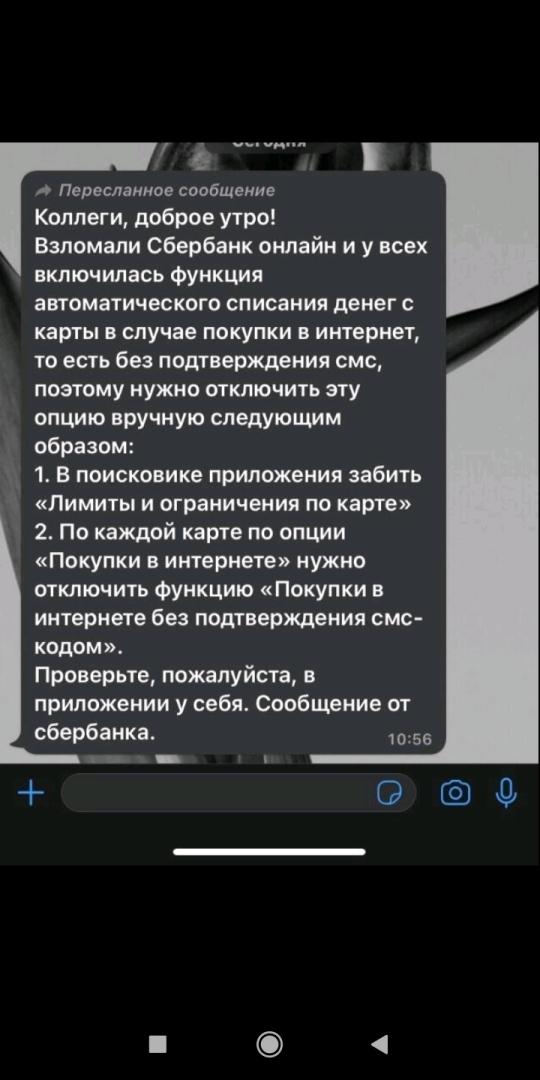 Хоть у меня и не чего терять,карты пустые,дохода на них ноль,но всё равно! Захожу в Сбер и узнаю у них,что от всяких хакеров,их системы защищены надёжно! Что не стоит беспокоиться,но посоветовали ограничить лимиты в настройках и сделать оповещения по всем операциям на всякий случай!