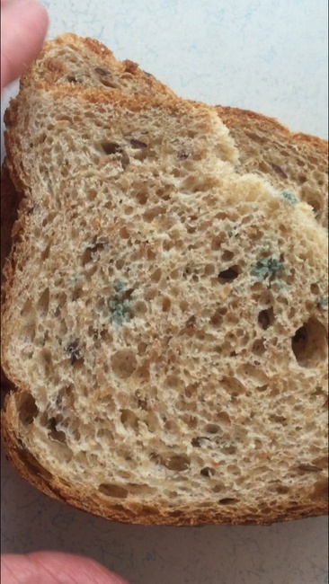 Потом осмотрела свой бутерброд и заметила на нем следы плесени.