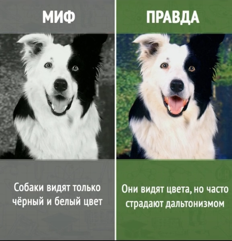 На счёт того, что большинство собак дальтоник - абсолютная правда. У нас 3 таксы дома. Муж с работы принёс лазерный излучатель зелёного света. 2 таксы бегают за точкой, а вот третий её не видит! Просто сидит, с ужасом смотрит как остальные 2 дуркуют и скулит - не может понять, что происходит. Реакция на красный лазер обычная. Гоняется за точкой.