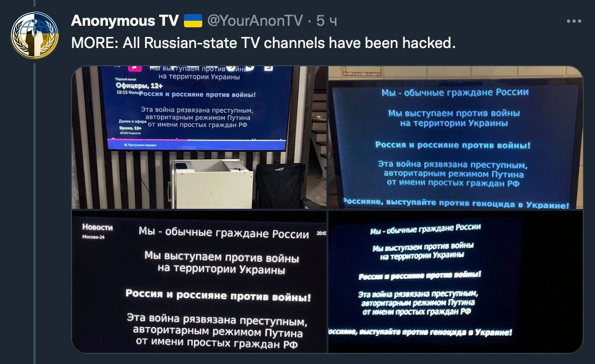 Хакеры из группировки Anonymous заявили, что это они взломали интернет-трансляции российских телеканалов