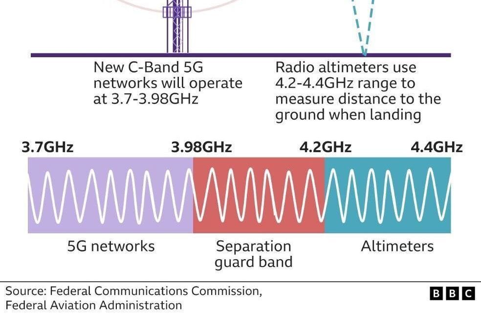 Группа авиакомпаний США предупредила, что сеть 5G может задержать или отменить более 1000 рейсов в плохую погоду из-за опасений за безопасность самолетов из-за возможных частотных помех. Это может означать, что большое количество самолетов останется на своих взлетно-посадочных полосах без использования. Boeing и Airbus также обратились к правительству США с просьбой отложить внедрение 5G из-за опасений частотных помех.