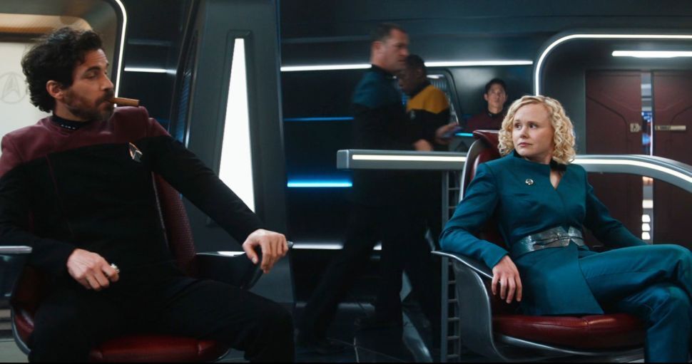 От открывающегося крупным планом мгновенно узнаваемого красного значка предупреждения до вдохновенных секунд спокойствия, страха и предвкушения трех офицеров Звездного Флота, едущих на турболифте к линии фронта, которая в данном случае является мостиком, откуда следует быстрый выход. Отчаянная схватка, прежде чем они будут уничтожены шквалом лазерного огня… настолько далеко от первого эпизода прошлого сезона, насколько это вообще возможно.