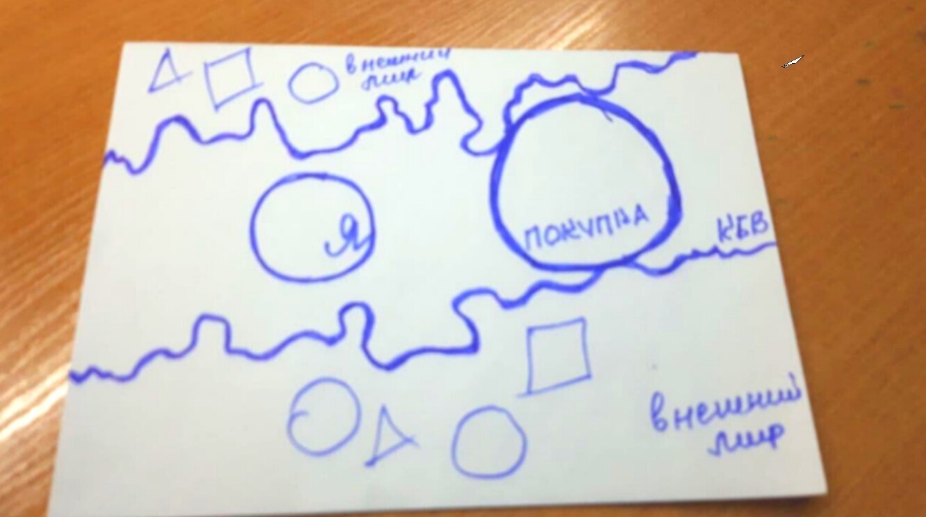 Те квадраты, что мы рисовали за линиями, это что тяжелое, что тянет назад, а внутри линий это надежность.