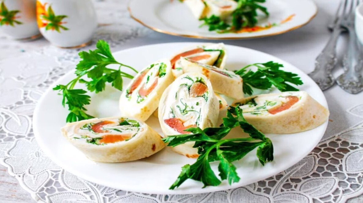 Тонкий лаваш с малосоленой рыбой или курицей. П.П.