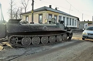 Брошенный в ходе боёв за Конотоп вездеход МТ-ЛБ ВС России с маркировкой O