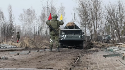 Буква V на российской технике. Понтонная переправа через реку на Украине
