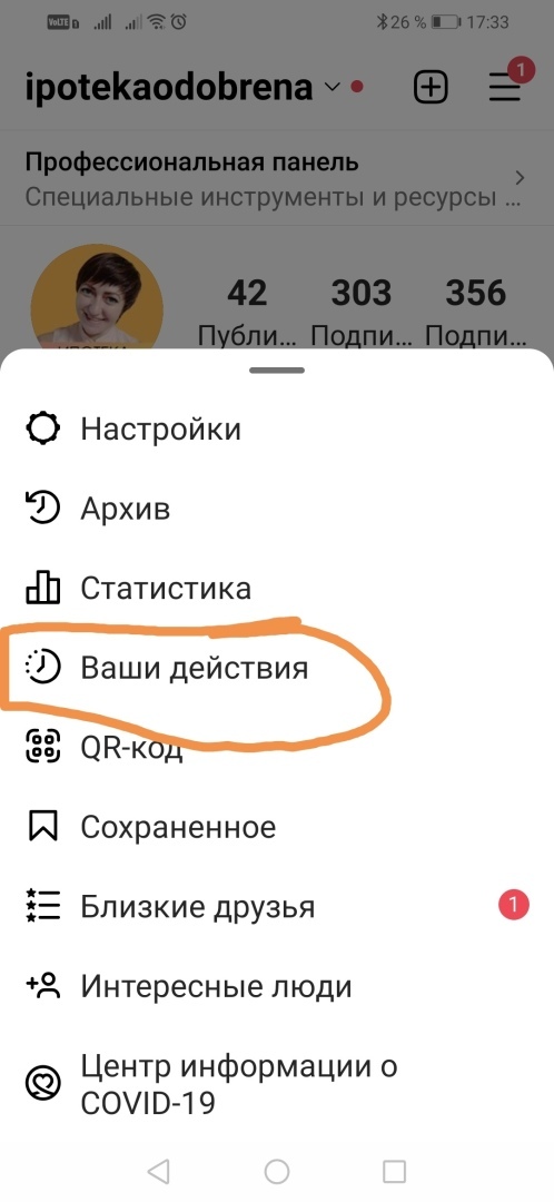 В открывшемся меню выбираете пункт Ваши действия и нажимаете.