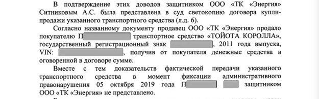 В произошедшей ситуации человек приобрел машину, которая ранее принадлежала юридическому лицу. Штраф на бывшего владельца, пришёл уже после совершения сделки. В подтверждение данного факта истец (юридическое лицо) предоставил в суд договор купли-продажи автомобиля.