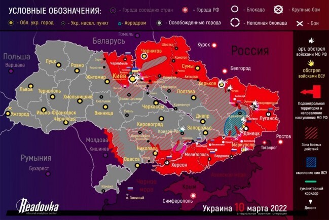 Карта продвижения российских войск на Украине 10 марта 2022 года