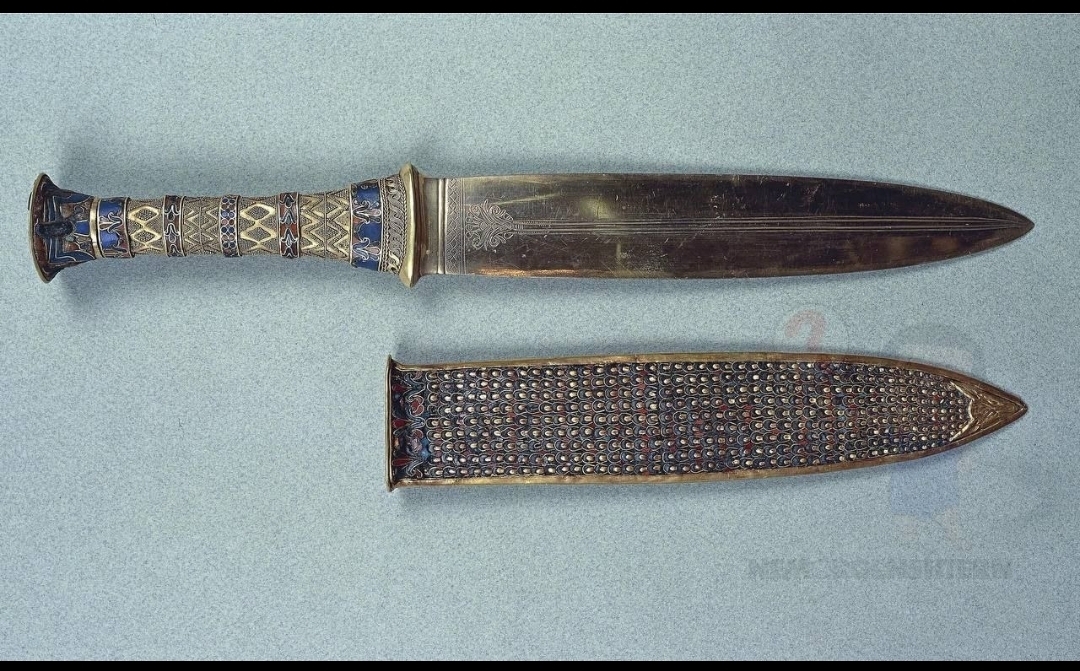 Учёные провели тест материалов клинка, находившегося в гробнице: для ручки был применен известковый гипс, который в Египте был замечен крепко позднее, например же как, вобщем, и работа с железом, начавшаяся на земли приблизительно в 1200 г. до н.э. (Тутанхамон правил только в XIV веке до н.э.) Впрочем в одном из архивов была найдена табличка, указывающая, собственно что кинжал – презент деду египетского фараона от правителя Митанни (современная Сирия). Вполне вероятно, как раз там и было создано орудие.