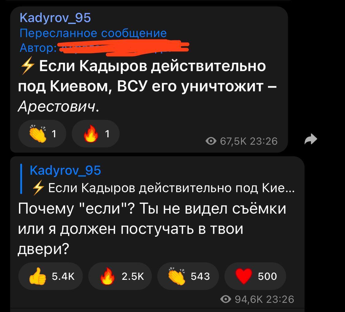 Рамзан Кадыров отреагировал на заявление советника Украины Арестовича о появлении главы Чечни под Киевом.