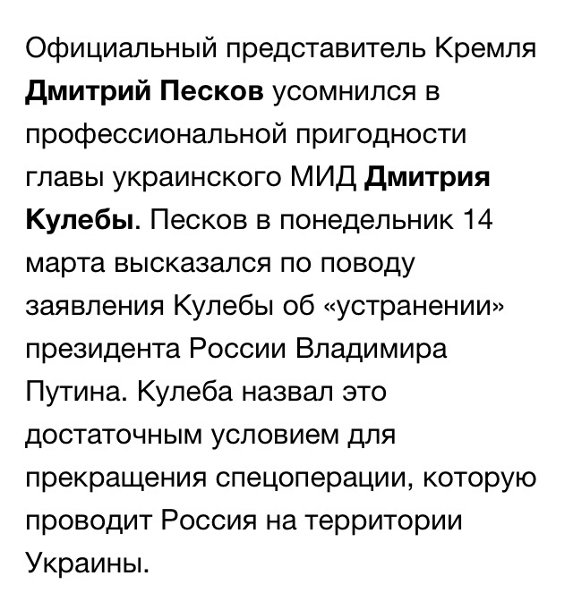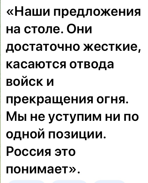 Кулеба впрочем вполне открыто саботировал диалог: «я еду на эти переговоры с сильной позицией, никаких шагов на встречу Москве сделано не будет»