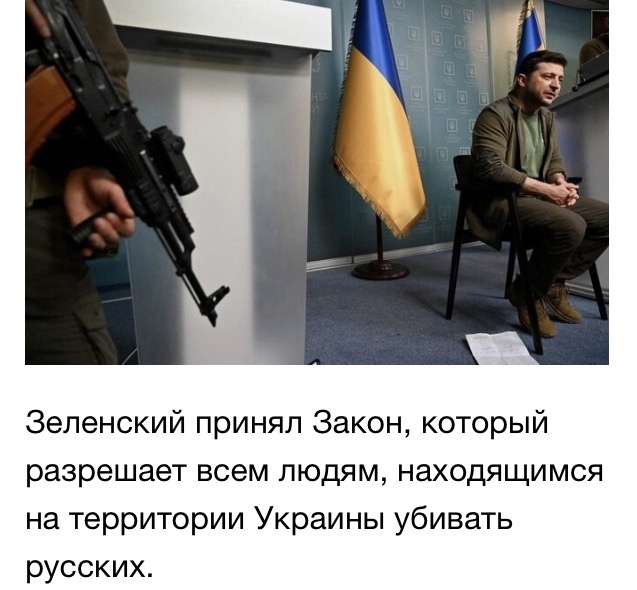 И по факту, юридически оформил всех живущих на Украине в ряды солдат. Он юридически уничтожил понятие «мирный житель»....