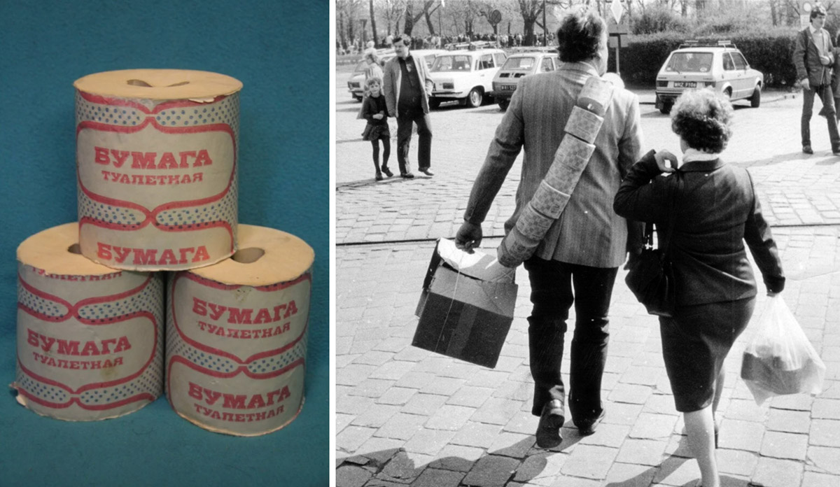 так снимок и есть начало 90-х. , не знаю, как у вас в подмосковье, а у нас на периферии только в то время и появилась бумага в рулонах. До этого -детям салфеточки 3-х слойные, взрослым газеточки/тетрадочки)))