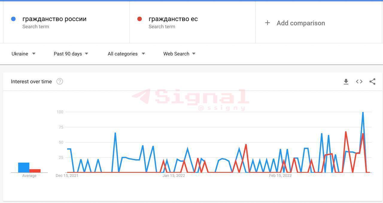 Статистика Google показывает, что с начала российской военной операции украинцы больше интересуются получением российского гражданства, нежели гражданством стран ЕС.